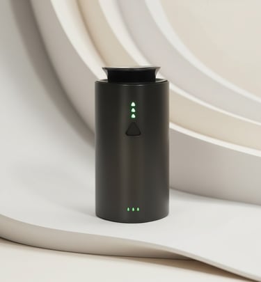 Esta tecnología transforma el aceite aromático en micro-partículas que se distribuyen de forma uniforme, silenciosa y eficiente, creando una experiencia aromática constante y sofisticada.
